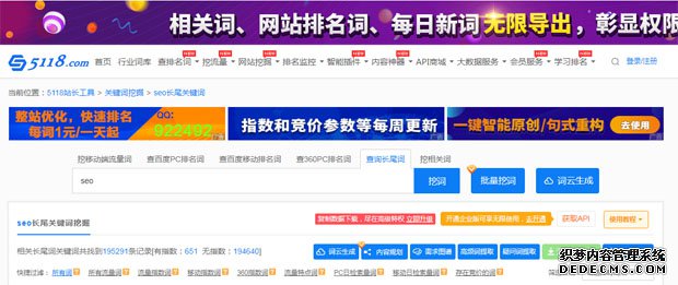 4、5118长尾词挖掘,挖掘长尾词的最佳工具,通过这里可以了解SEO数据的实时变化,可以了解关键词排名的具体趋势变化,指导关键词建设。